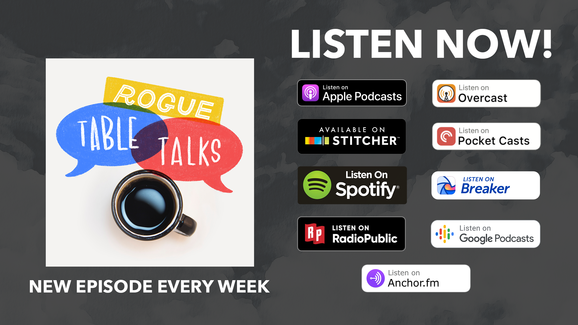 Rogue Table Talks looks at life and transformation and community and impact through scripture and the arts and life and community and family.